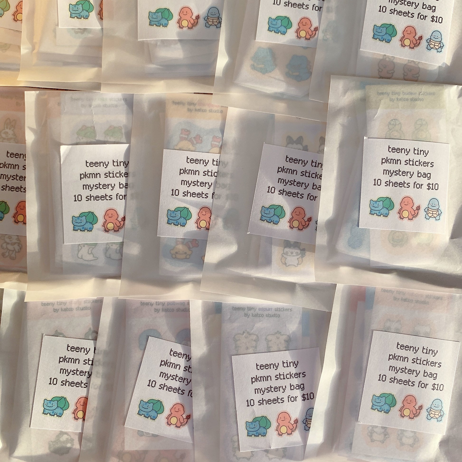 A blind bag of my teeny tiny pokemon stickers! Each bag contains 10 little sheets (which have 8pcs of stickers on each one). All are completely randomized.